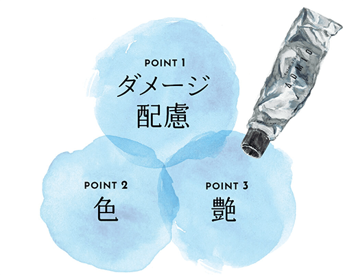 酸化染料を安定に保つことで、効果的な発色とダメージ配慮の両立を目指しました。