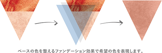 モノトーン系の色でベースを整え、色を重ねる「ファンデーション効果」も美しい仕上がりの決め手。