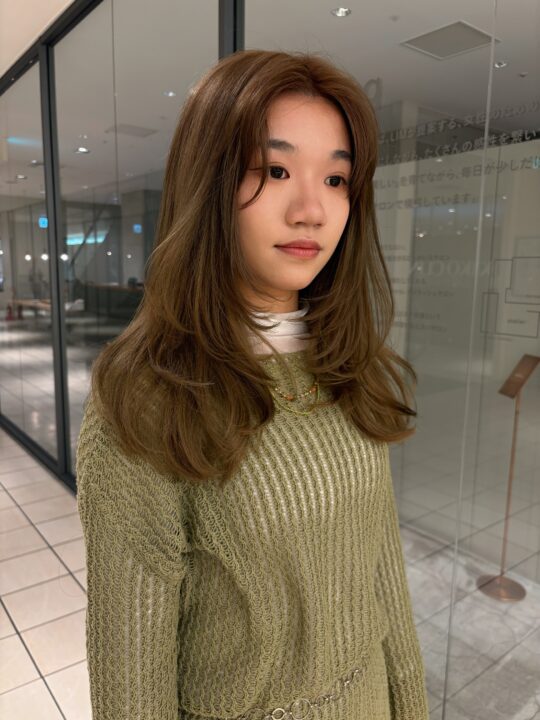 ブラウンとベージュの間くらいの、柔らかいブリーチしないとでない透明感。