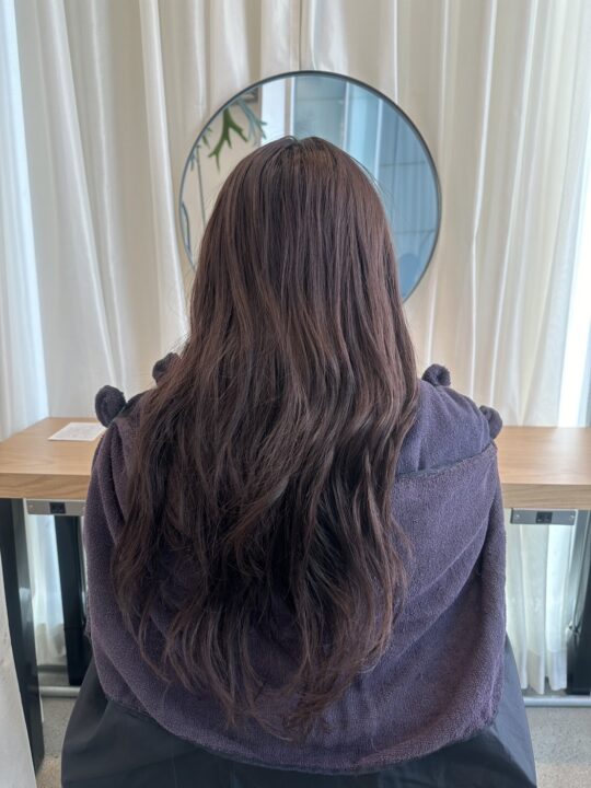 赤みの強いビフォアをアクアで少し赤みを抑えつつくすませすぎないブラウンに。