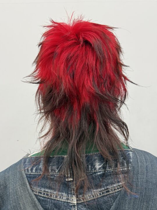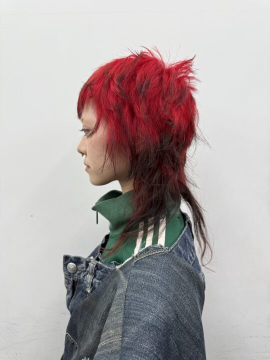 ルーツカラーでビビットなレッドと毛先のダークブラウンのコントラスト
