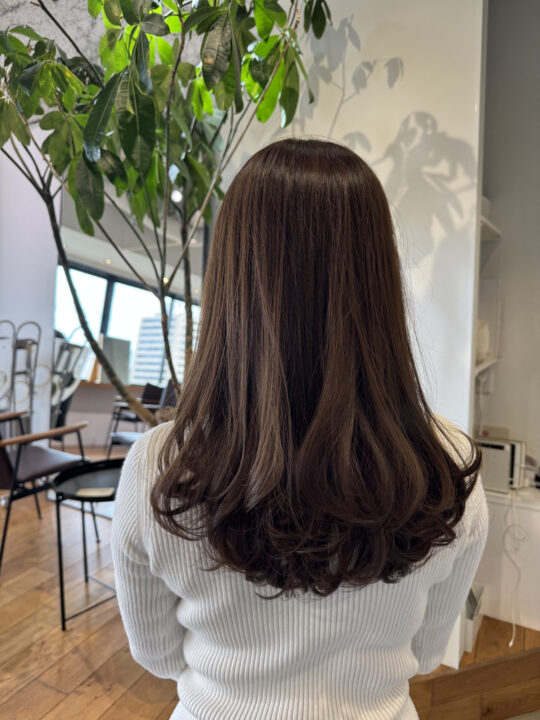 赤みをしっかり抑えるグレージュ+マットベースに、透明感を引き出すための調整しました。