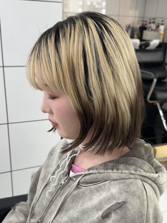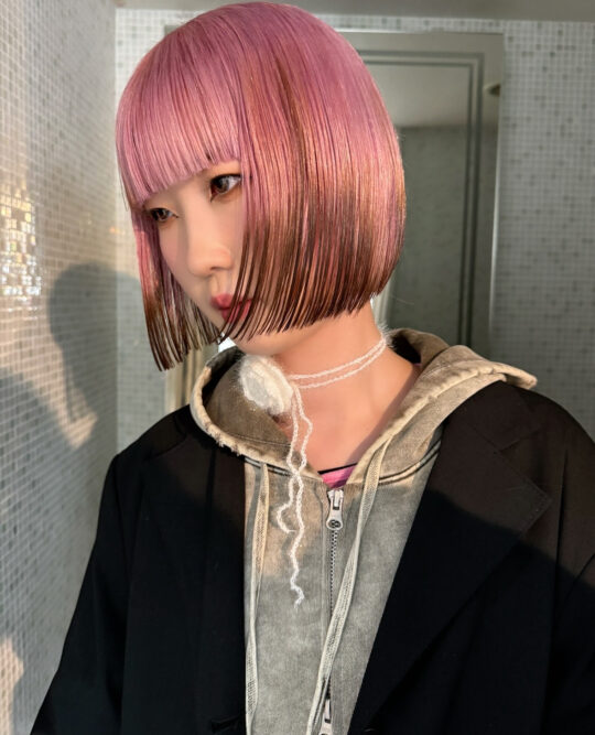 高明度のピンクをベースに、もともと入っているローライトのブラウンはそのままに活かすことで桜の木のようなイメージです。
