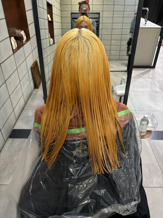 ブリーチなしでは作れない透明感と、色落ちしたときに柔らかい少しくすんだ金髪になるのが、可愛いポイントです。