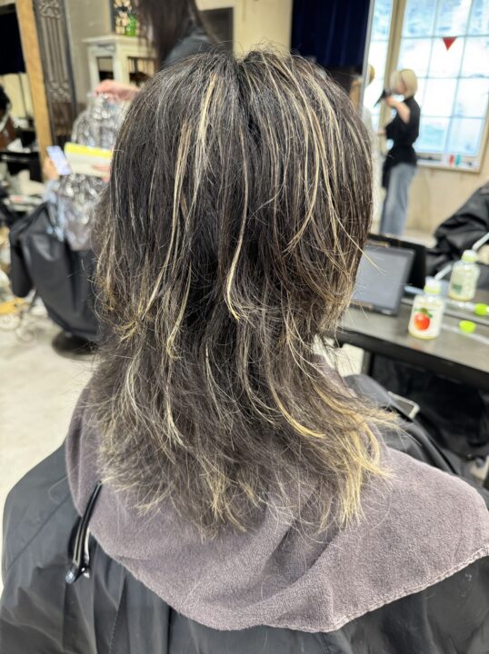 しばらくリタッチをせず、ブリーチ毛をなくしていきたいが遊びたいお客様。