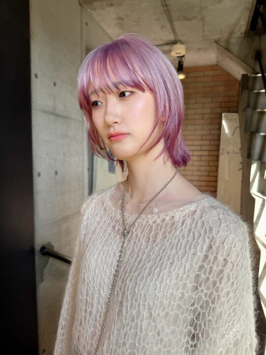 ベースはペールトーンのバイオレット、ポイントで高濃度・高彩度のバイオレットを使いました。