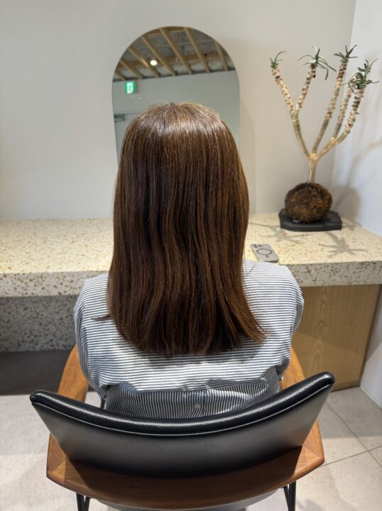 根元の白髪が伸びてきても馴染みが良いピンク系で設定しました。