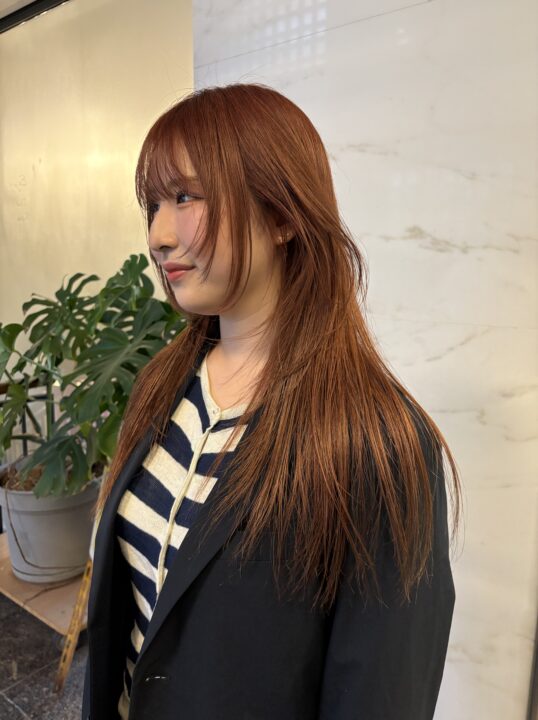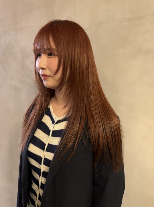 オレンジにしたいけど派手にはなりたくなくて、お顔に合うように少し赤みのあるオレンジブラウンになるようにしました。