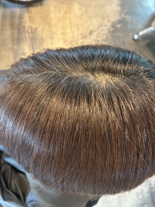 硬毛で染まりづらい白髪もナチュラルベージュに染めました。