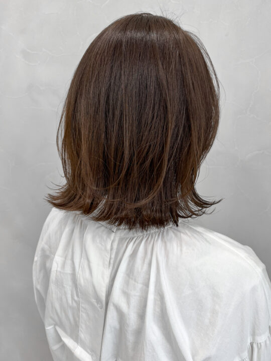 赤みをおさえたまろやかなブラウンに、ほんのりグレージュの透明感をプラス。