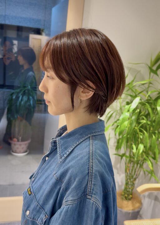 ハイライトを入れて立体感のあるツヤ感柔らかピンクブラウンカラー
