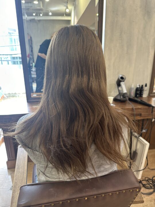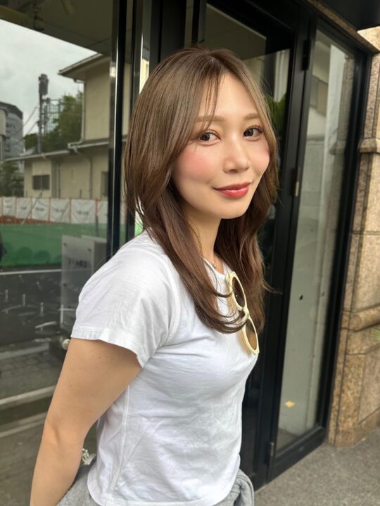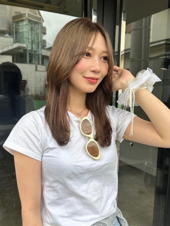 ブリーチベースにトーンをあまり落とさず透明感とほんのり色味のわかる赤みのないカラー