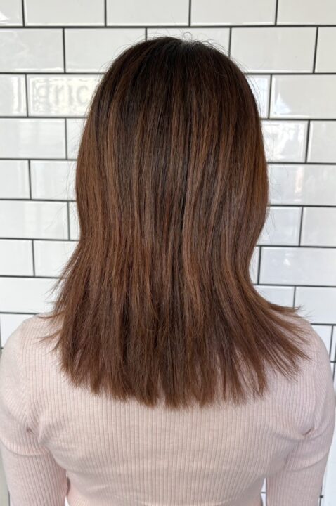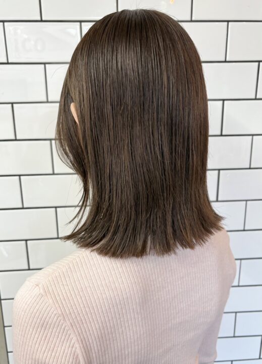 切りっぱなしの面でみせるスタイルなので、暗くし過ぎず透明感とツヤ感を表現したところがポイントです。