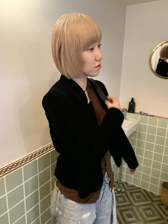 寒色ではなく、補色にピンクを組み合わせたベージュです。