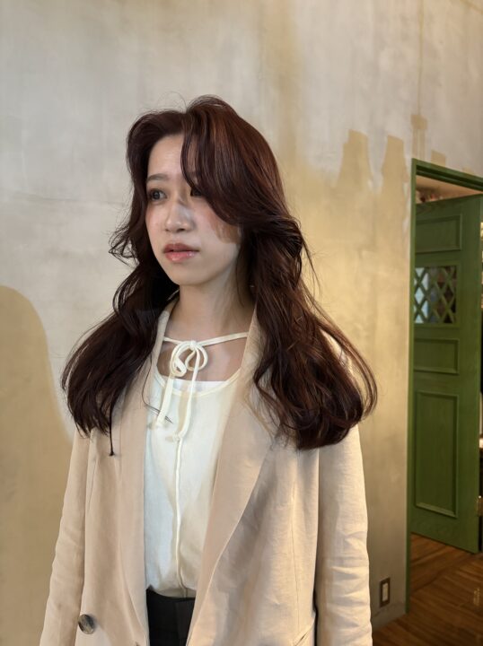 黄みの出やすい髪なのと、しっかりピンクが分かるような色にしたかったので、