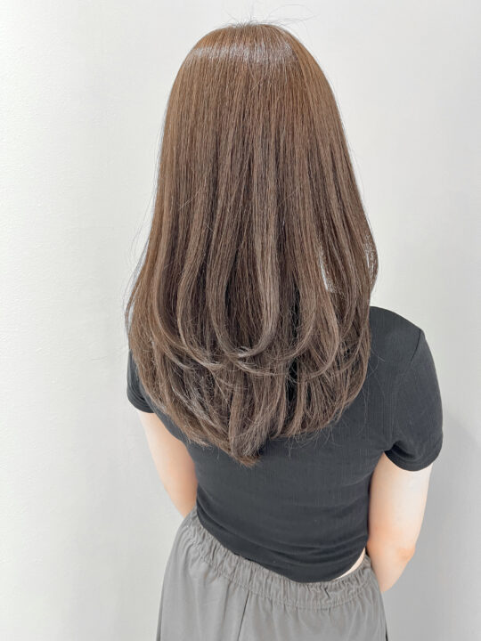 やわらかなベージュ系のミルクティーカラーに、ほんのりピンクのニュアンスを加えた大人可愛いカラー