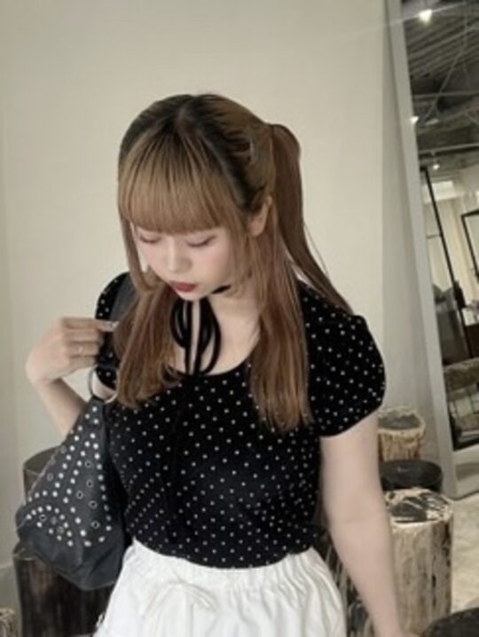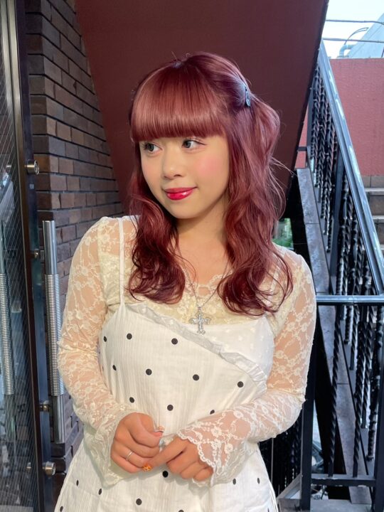 肌馴染みがいい紫みのあるピンクベージュに毛先には濃いピンクをポイントに組み合わせました。