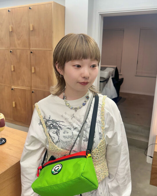 ブロンドのイエロー感も残したベージュカラーなのでくすみすぎずなハイトーンカラーです。