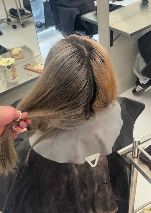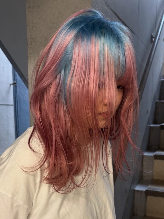 根元のシアンは薬剤がしっかり発色してくれるため、クリアの調整でしっかり色落ちするかつ、高発色するように薬剤の調整をしました!