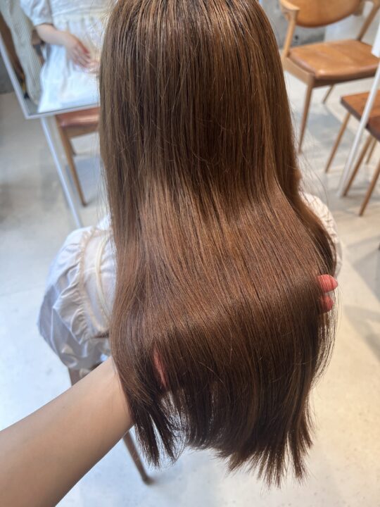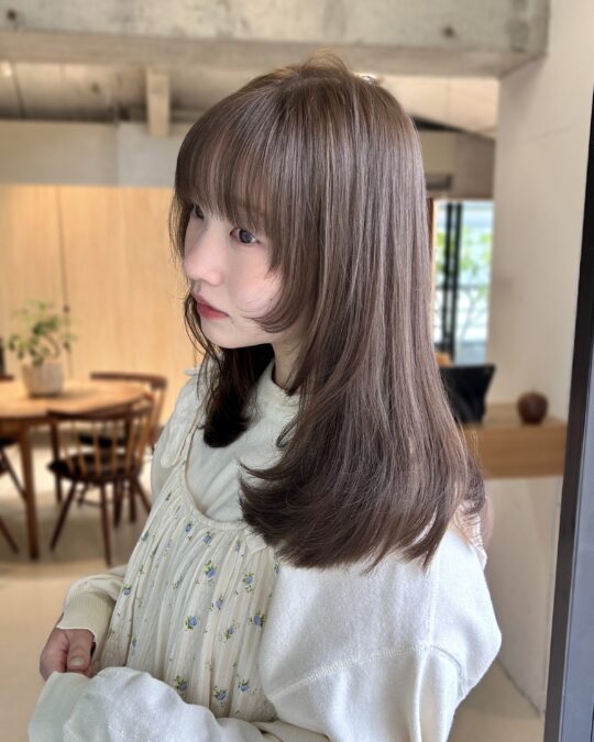 夏らしい柔らかさを演出するために赤みは消しつつ、アッシュにもやりすぎないよう組み合わせています。