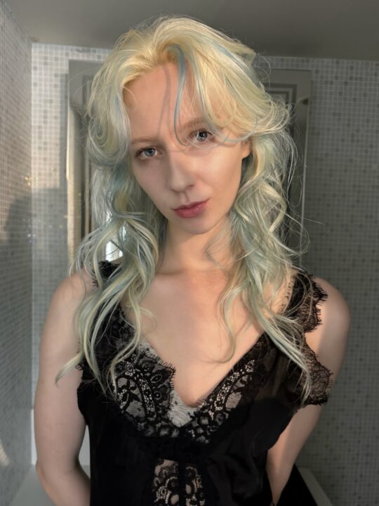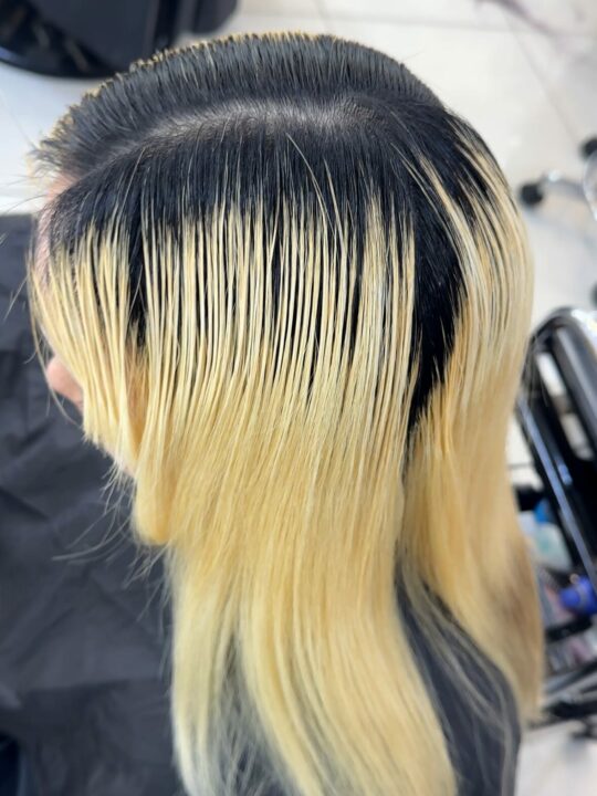 ブロンドベースにシアンのハイライトを沢山入れて夏のイメージを強く出しました!