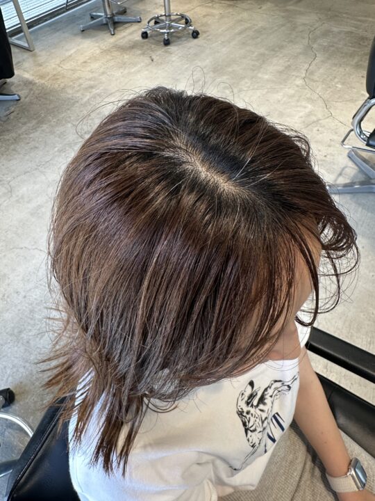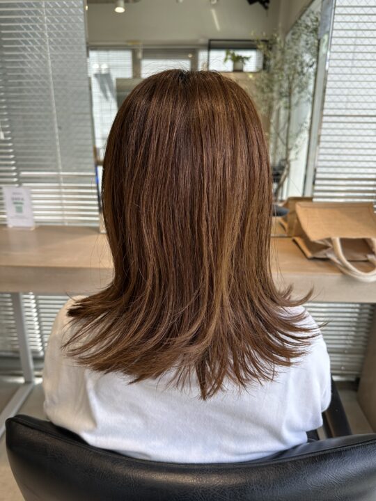 極細ハイライトで白髪ぼかしもしつつ、お洒落なヘアカラーに。