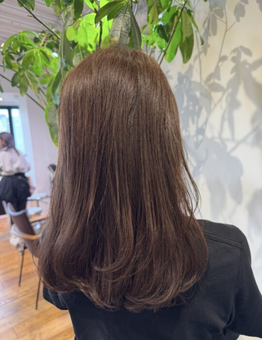 Olive系のお色味で透明感を強調した白髪染めとは違う楽しみが出来るカラー