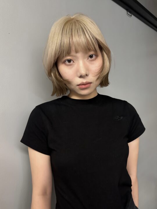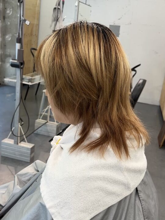 全体をベージュにブラウンのローライトをいれて表情を出したら、引き締め効果を作りました。