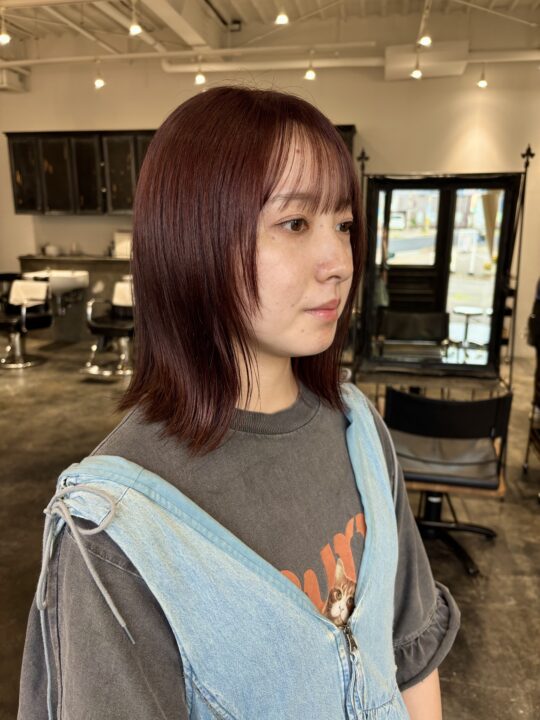 深味のあるピンク系カラーで落ち着いた大人ピンクカラーに仕上げました。