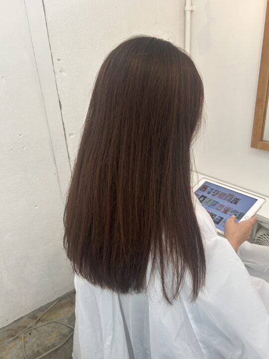 なるべく色落ちがオレンジっぽくならないようにアッシュとオリーブを入れて 色持ち良く◎