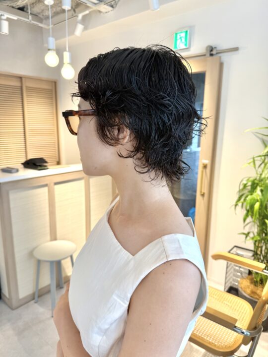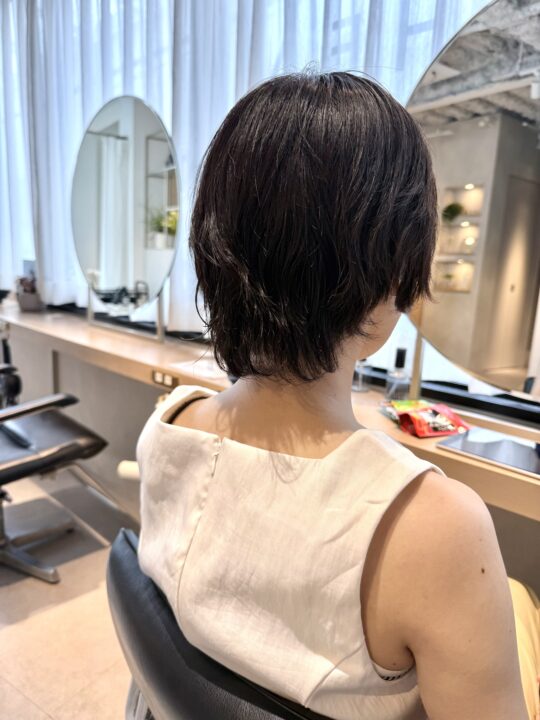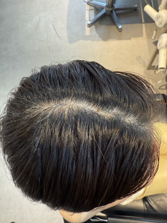 白髪染めを毛先まで塗ることで、褪色のしづらい深めのダークアッシュに仕上げました。