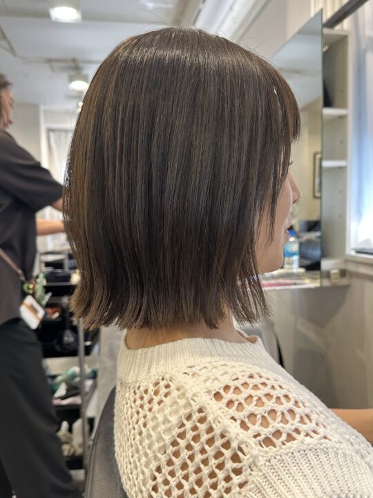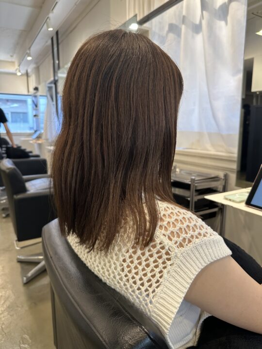 赤みの出やすい髪質のお客様だったのでオリーブ系をいれて透明感UP