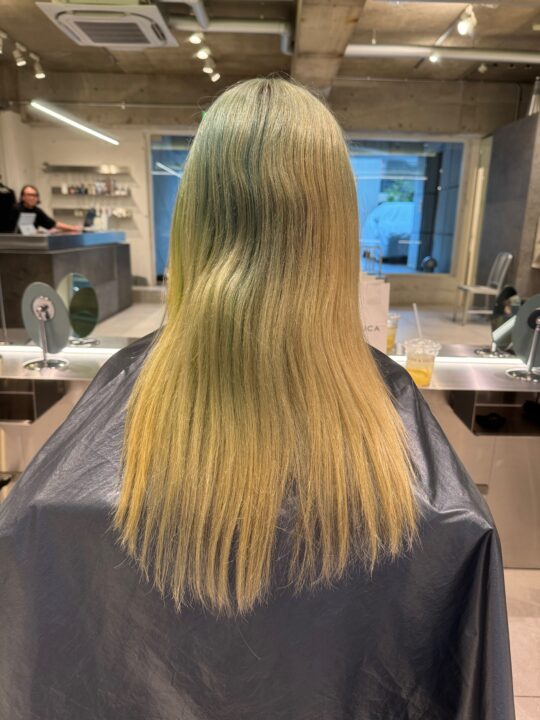 今回は、ムラ感の目立つベースを一度脱染してベースを整えてからオンカラーをしました。