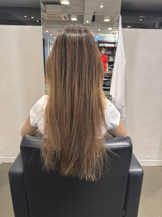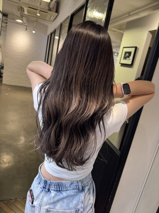 ハイライトを足して黄みや赤みをなくして透明感を出したグレージュカラー