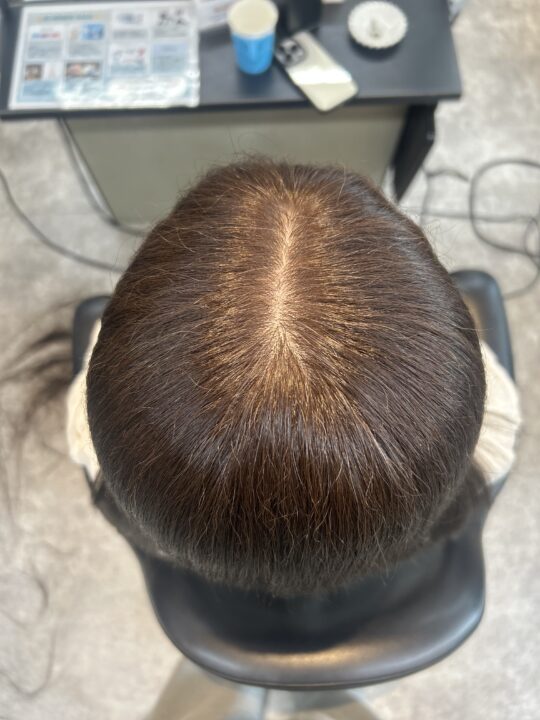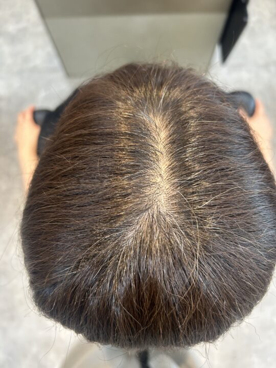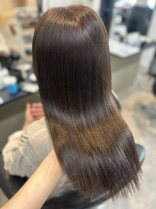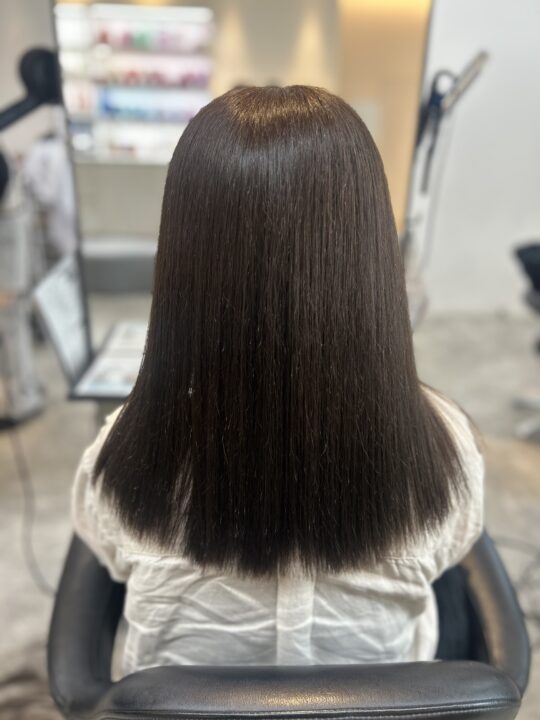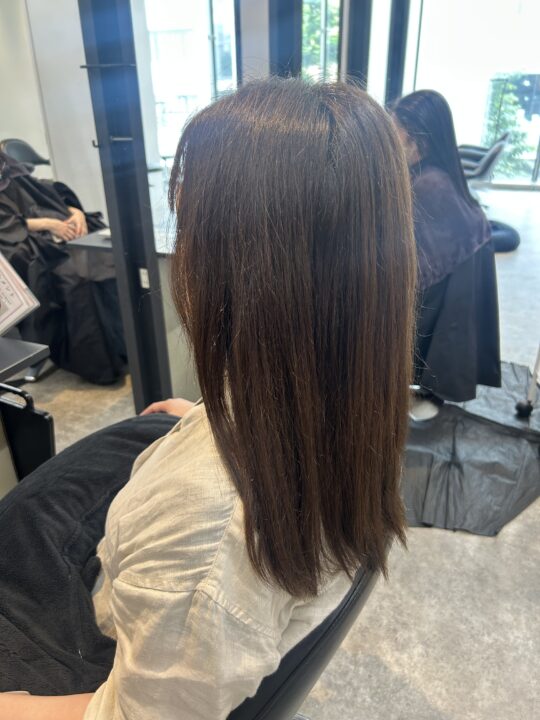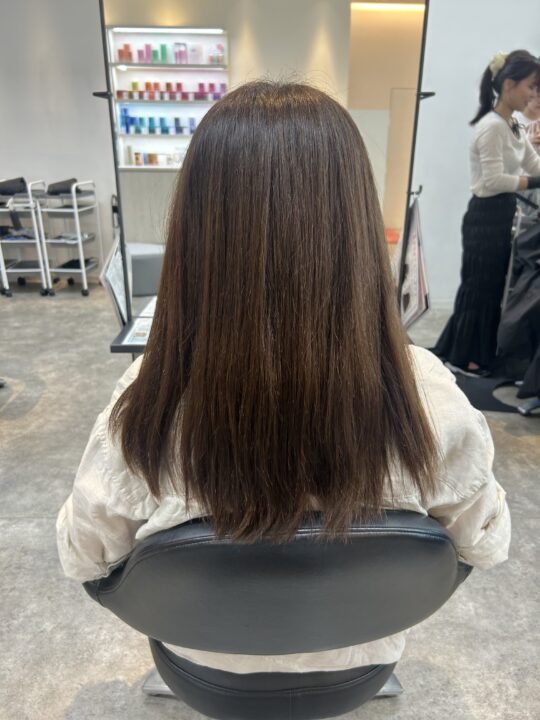 オレンジみが強いのを、グレー感は抑えめで透明感あるグレージュに仕上げました。