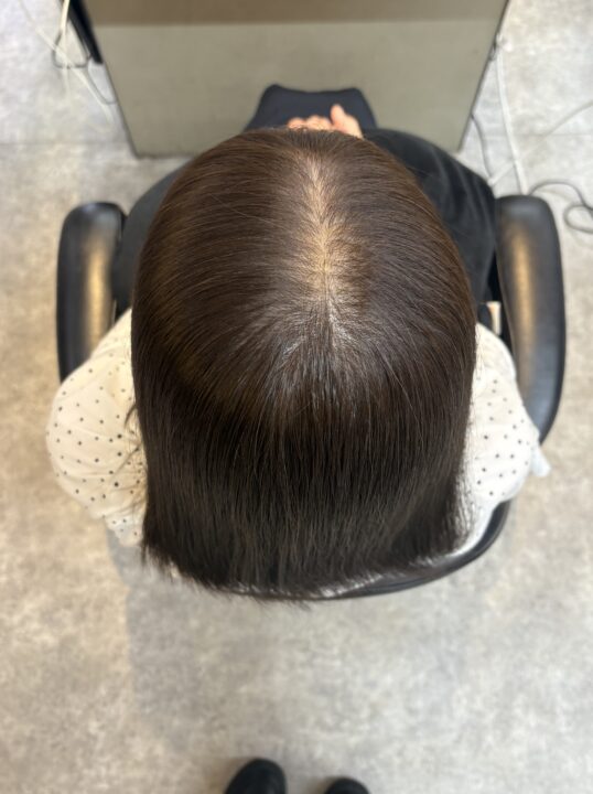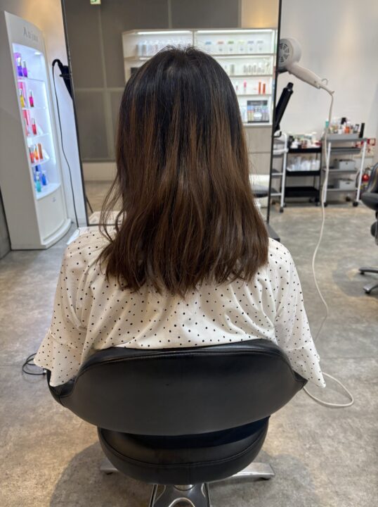 1年程カラーをしていないので中間で二層になっていましたが、根元と毛先で薬剤を変えてなるべく馴染むようにしました。