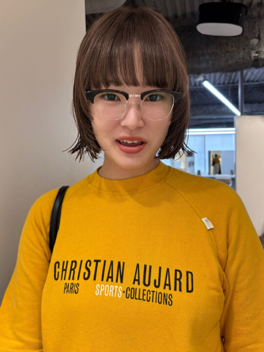 6トーンベースから、12トーンのオリーブで明るさを出しつつ深いバイオレットも組み合わせてワンカラーで艶のある透けるベージュカラーを作りました!