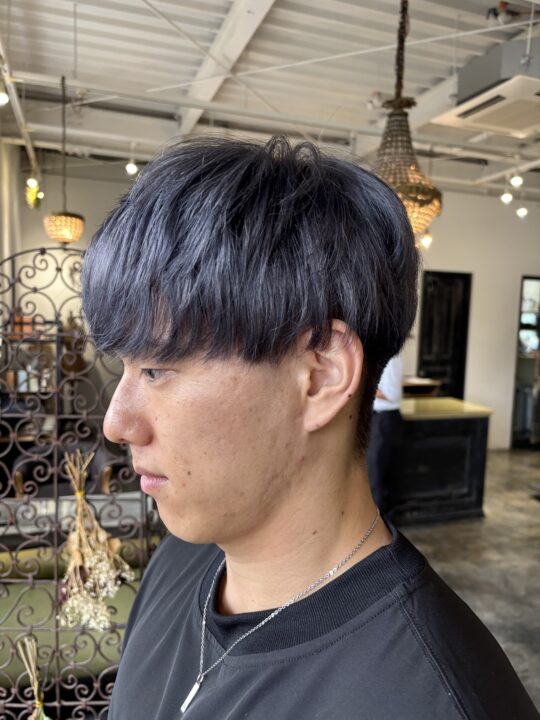少しラベンダーも組み合わせてベースの黄色みを消して柔らかいブルーグレーにしました。