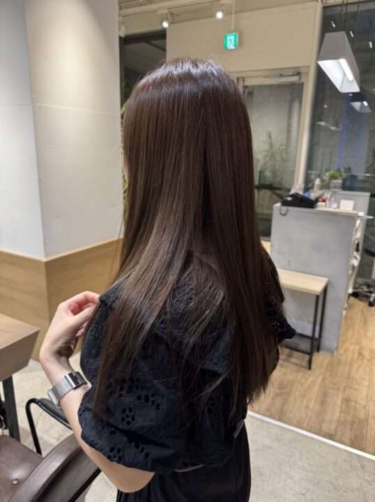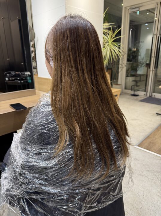 新生部をリタッチ後、中間・毛先に10Lvのカラー。