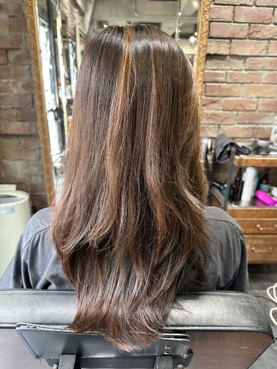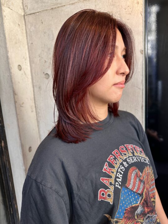 ブリーチなしのベースで高彩度なレッドブラウンです。