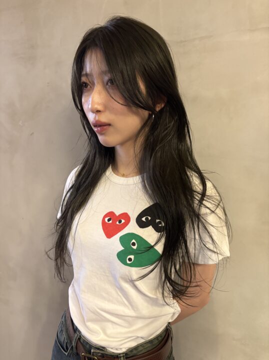 暗くしたいけど透け感が欲しかったので、根元の新生部はOX6%を使ってレベルを上げたのと、毛先は暗くなりにくいのでしっかり1剤のレベルを落としてカラーしました。
