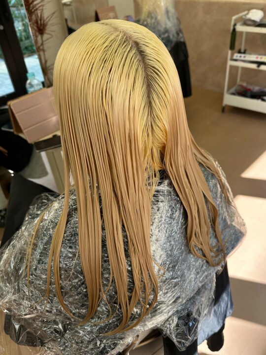 色落ちホワイトブロンド目標の薄ピンク!ピンクは2週間目安の褪色。