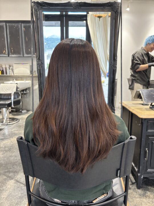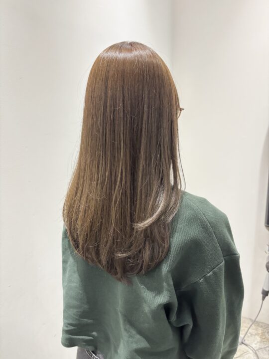 ブリーチ無しのトーンアップでダメージを抑えながら柔らかい色みになるようなカラーにしました。
