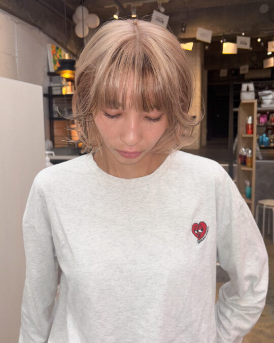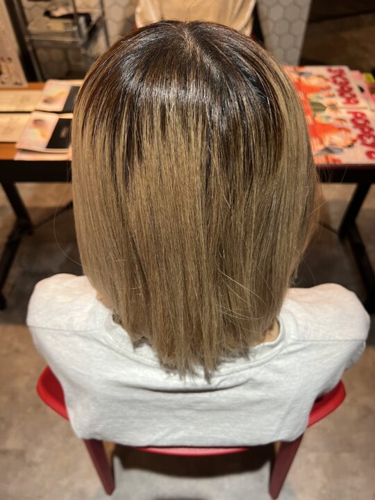 ハイトーンのベージュとブラウンのローライトの組み合わせカラー
