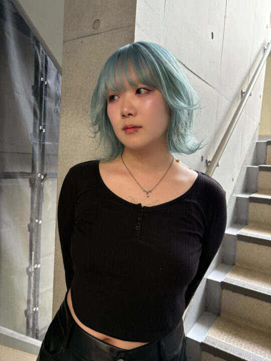中間・毛先に残留があるけど明るく見せたいとのことでシアンをできるだけ薄めて作りました。