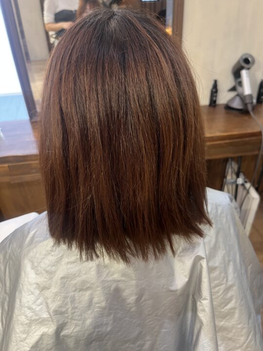 髪が柔らかくみえる肌馴染みの良いブラウンベージュにしました。