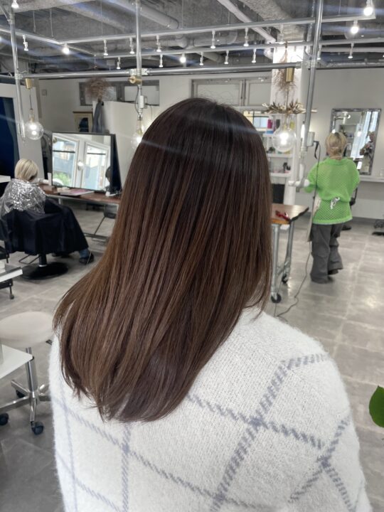 赤みがあるのでアッシュも組み合わせながらナチュラルな質感にしました。