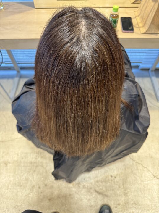 退色後の黄味を消したラベンダーベージュ、ナチュラルに入れることで色落ちも気になりません*