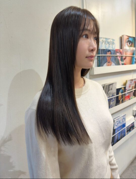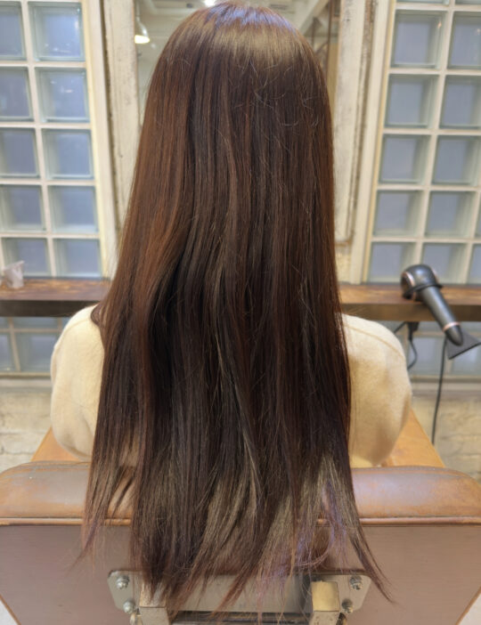 赤みを消しつつトーンダウンしたいお客様におすすめな地毛風ダークブラウン。