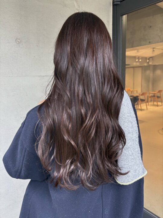 髪を落ち着かせるだけでなく、透明感は残したままトーンを下げました。